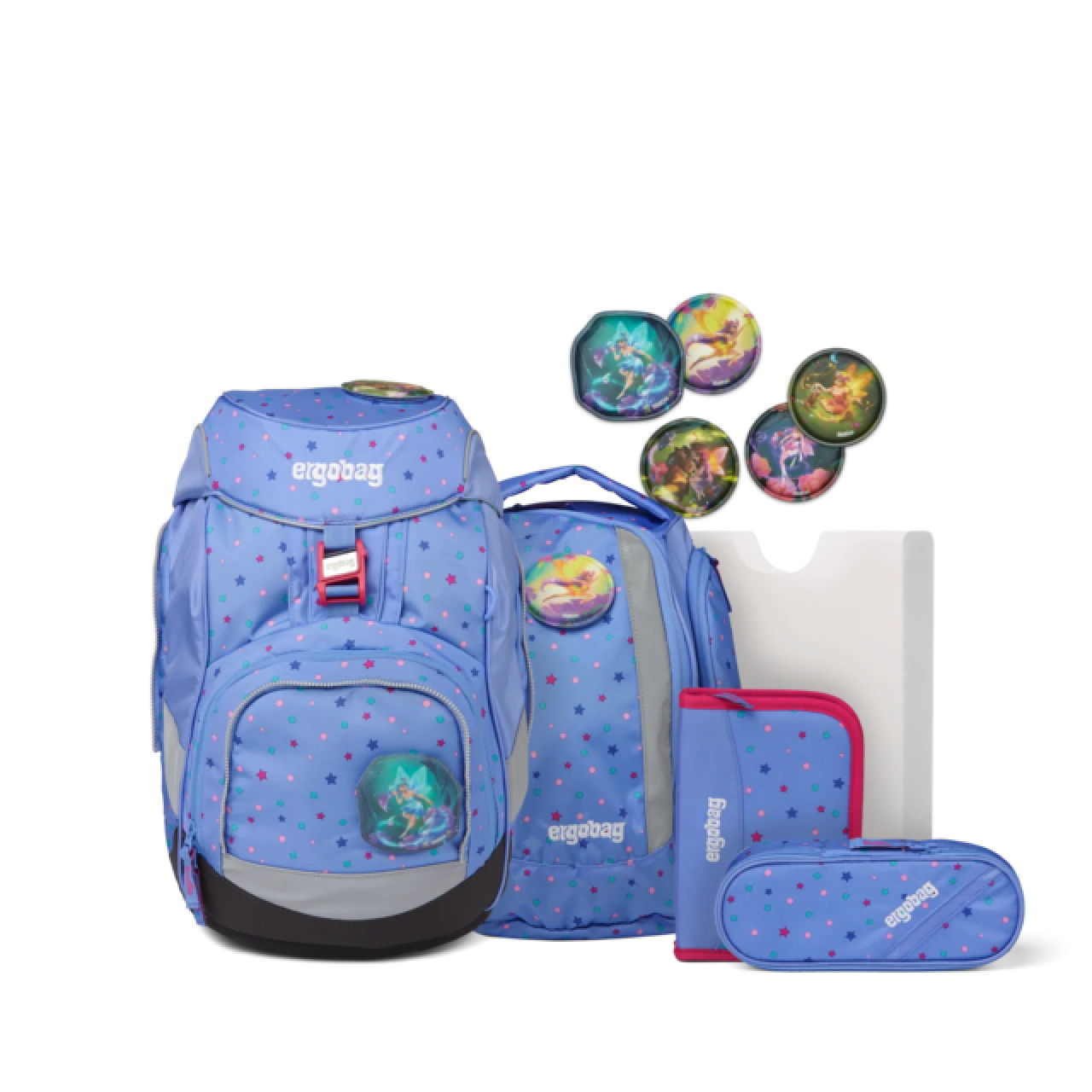 Mit den 4 Kletties und einem zauberhaften Kontur-Klettie lässt sich der ergobag individuell gestalten.